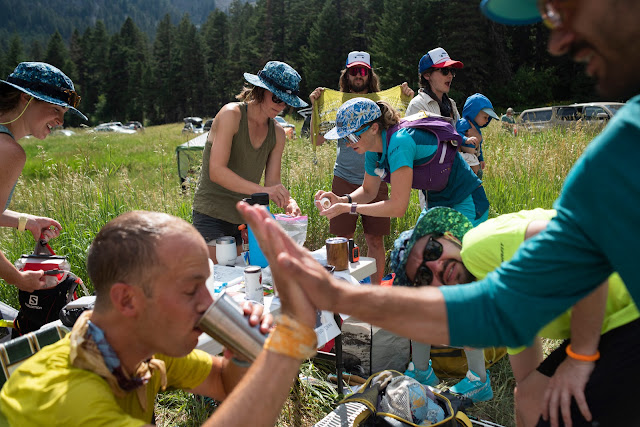 Tyler and I turned off our headlamps a mile before the Crandall Cabin, another sunrise warming the edges of the Crazies. Soon, we could see the mini-disco ball projecting psychedelic colors from the trunk of our crew van. Tyler’s partner, Jamie, emerged, surprised to see us so soon, and quickly made space for Tyler to sit. I retrieved a cup of broth for Tyler from the aid station as he traded for dry shoes and socks. Before long, he and his new pacer, Scott, set off to the north, still many hours away from the finish line.
